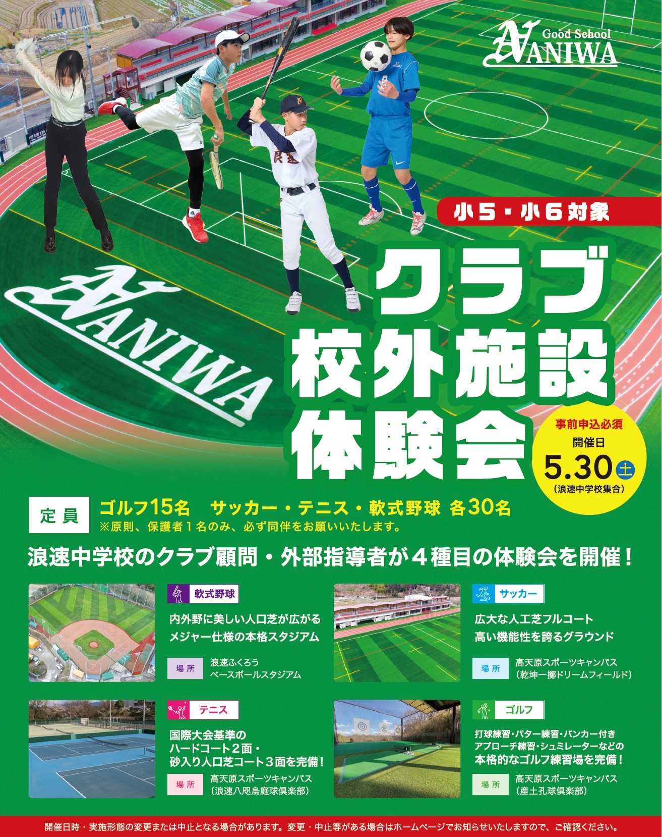浪速中学校のクラブ顧問・外部指導者が4種目の体験会をご用意!!
