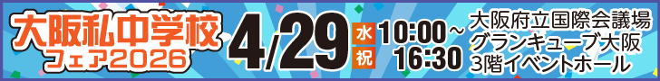 2026.04.02 大阪私立中学校フェア2026に参加します 大阪私学の進学相談会 大阪の全ての私立中学校が参加する 大阪私立中学校フェア2026が 4/29(水・祝)10:00~16:30 大阪府立国際会議場で行われます 詳細は下記リンク先(外部)をご覧ください お知らせ一覧へ