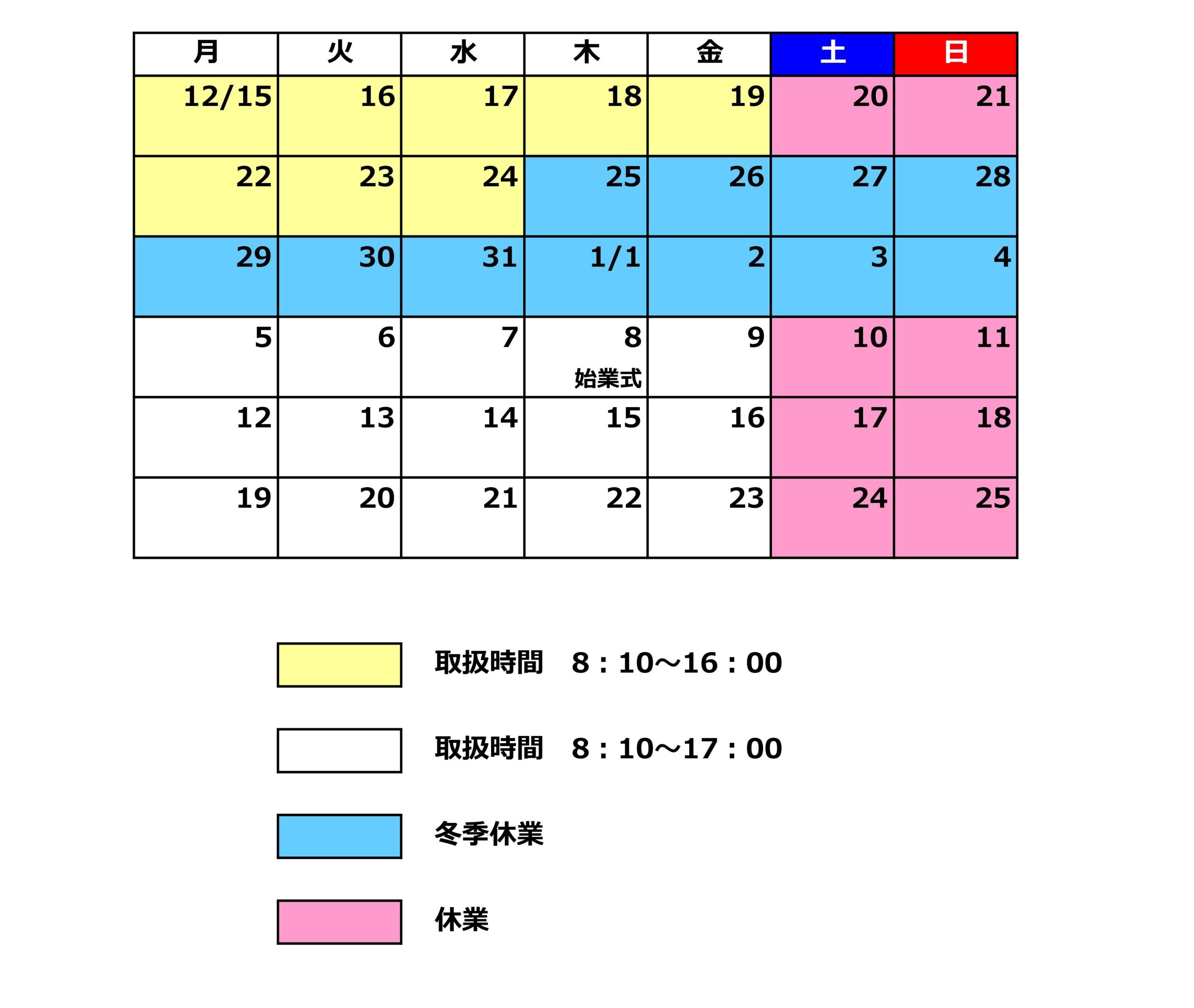 冬季休業中のため事務取扱を変更いたします